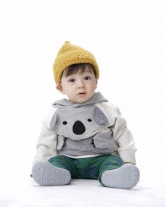 コアラのなりきりパーカーに星柄のパンツで元気いっぱい男の子コーデ。